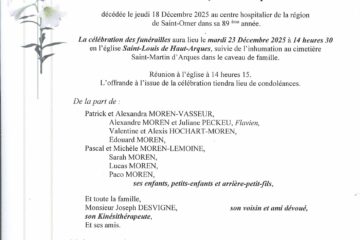 Mme. Jacqueline MOREN Décédée le 18/12/2025 Laissez un message de condoléances