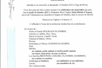Mme Jeannine FLANDRIN Décédée le 12/10/2025 Laissez un message de condoléances