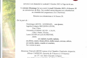 Mr Patrick LIEVIN Décédé le 03/10/2025 Laissez un message de condoléances