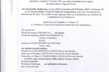 Mme Françoise DEROLLEZ Décédée le 07/10/2025 Laissez un message de condoléances