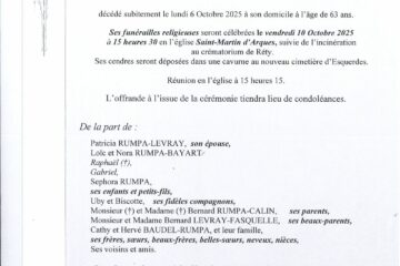 Mr Jean-Bernard RUMPA Décédé le 06/10/2025 Laissez un message de condoléances