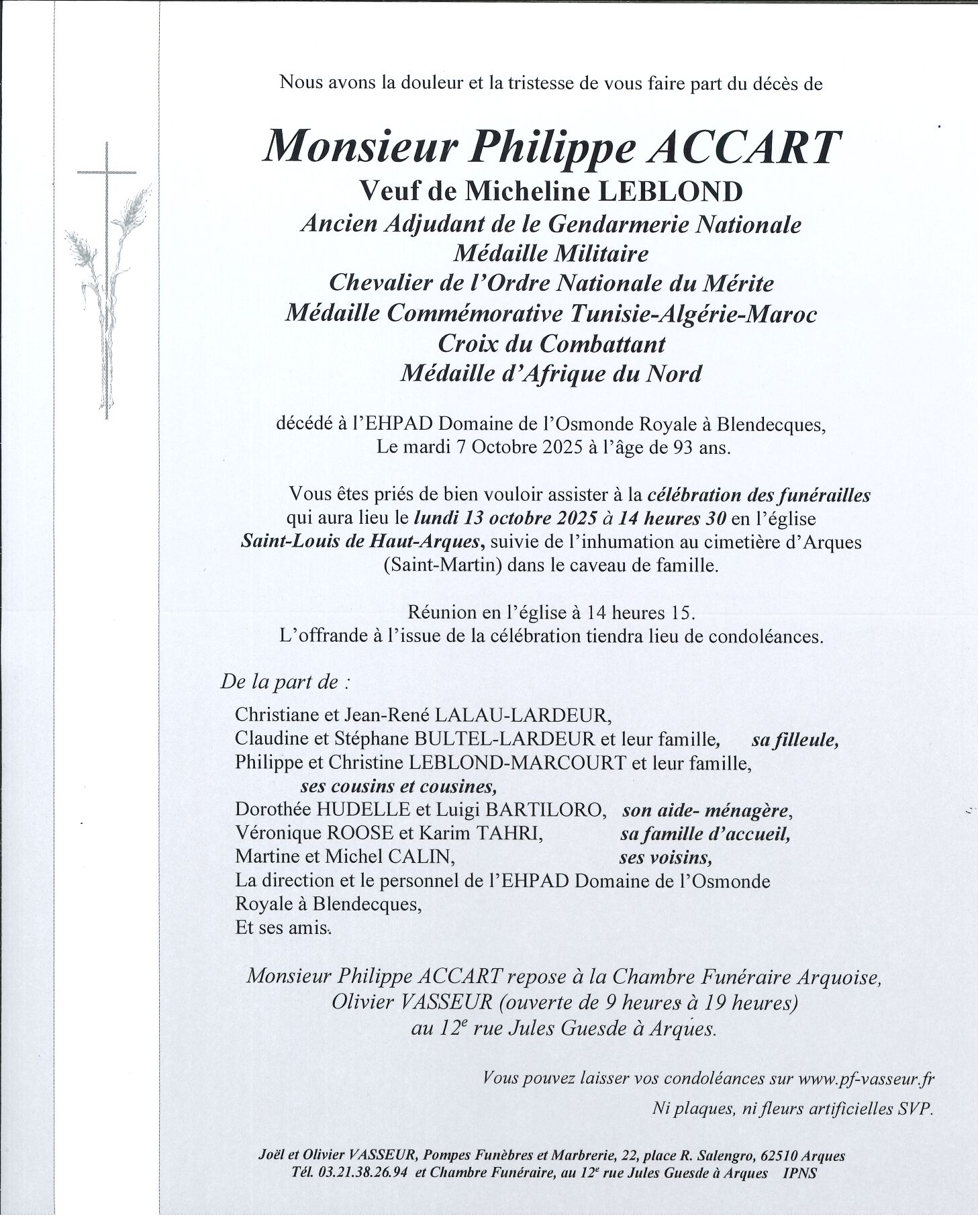 Mr Philippe ACCART Décédé le 07/10/2025 Laissez un message de condoléances